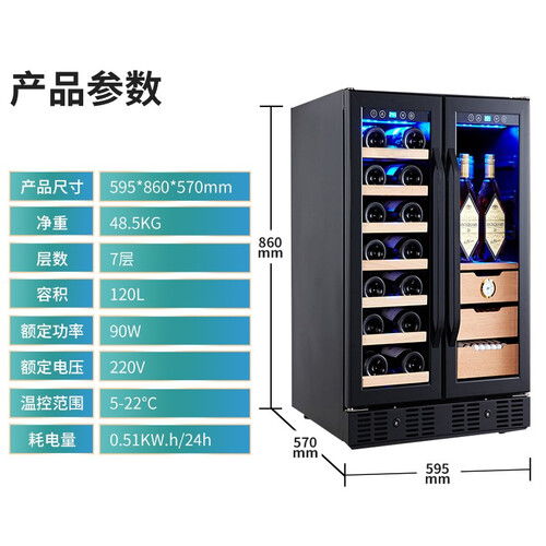 120升分区冷藏空间,各种酒品分类储放,互不干扰,洋酒、红酒、雪茄等都可容纳。控温精准,各种物品保鲜更适宜。