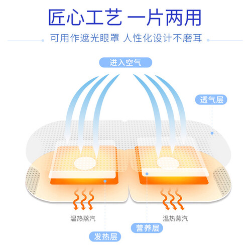 蒸汽眼罩达到40℃持续蒸汽热敷,精华更入眼,有效按摩眼部肌肤。一片两用设计,按摩同时还可做遮光眼罩使用。