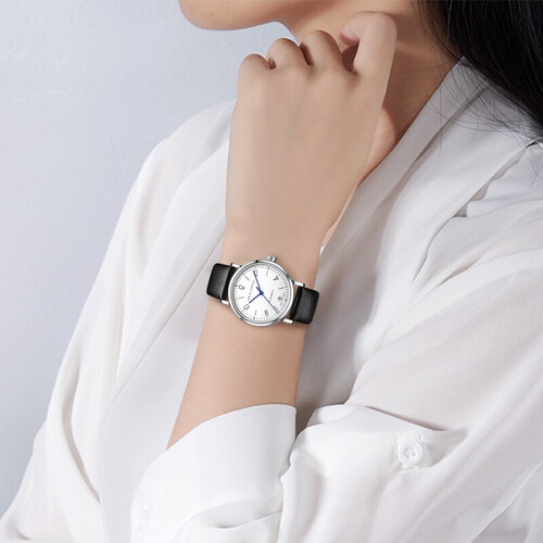 白色的表盘加持数字时标点缀,读时方便展现休闲都市风。加持硬度的合成蓝宝石表镜,有效防刮,带来更加清晰的视野。