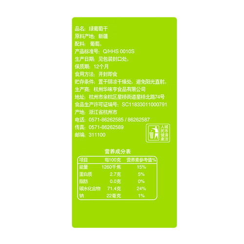 华味亨绿葡萄干