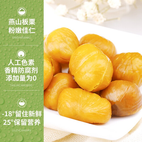 原产于燕山山脉板栗,果实糖分充足,入口甘甜即化。还采用精致脱皮工艺,表皮无残留,不用剥皮也能吃。