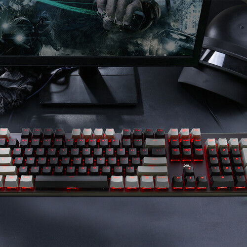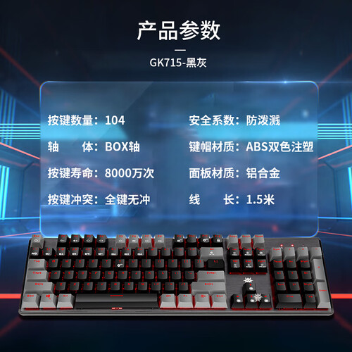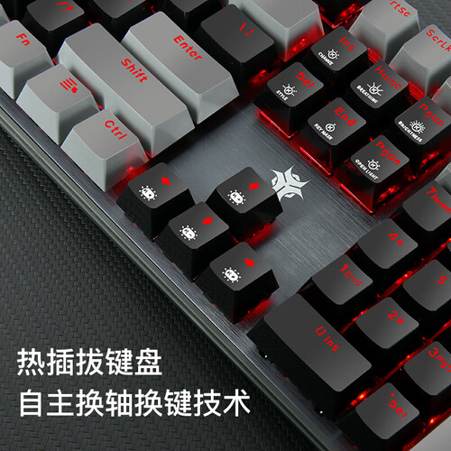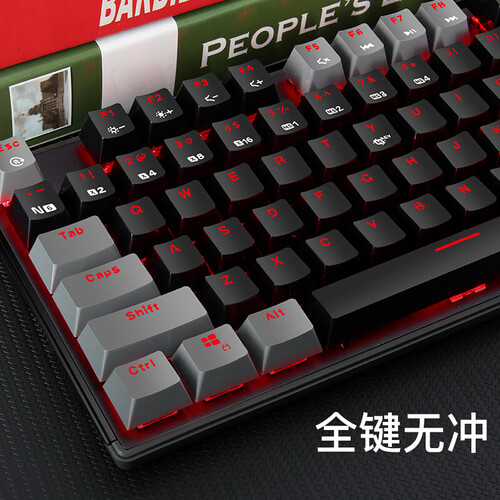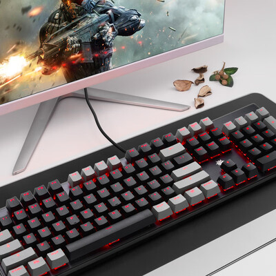104键全键无冲设计,精准快速的敲击,玩游戏体验流畅无冲击。耐磨双色ABS注塑键帽,手感舒适,表面颗粒均匀细腻。