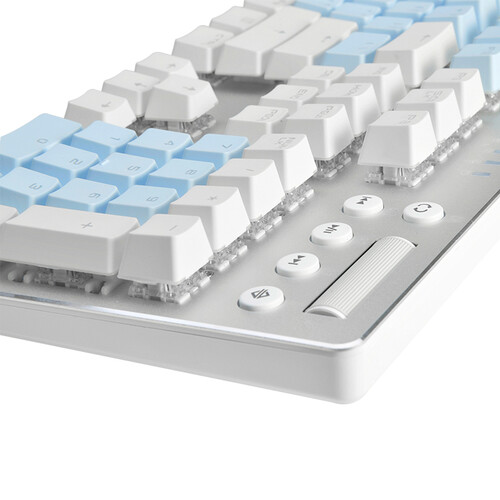 樱花主题版和天空主题版颜值都很高,在使用的过程中无形的愉悦了用户的心情。采用PBT透光键帽,耐磨防打油。