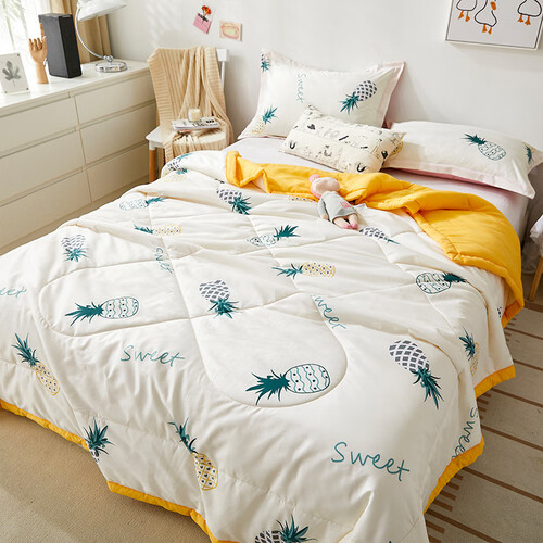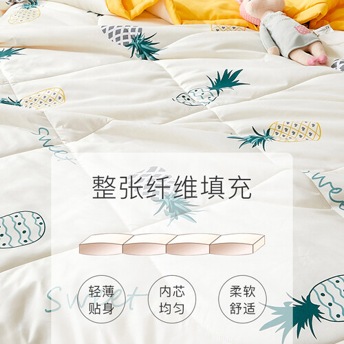 整张羽丝绒填充,厚薄均匀,蓬松暖和;采用环保印染工艺,不易褪色,久洗如新;加宽包边设计,美观又实用。