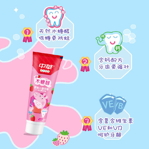 清新草莓味,带来愉悦的使用体验;采用食品级配方,使用更加安全放心;含复合维生素,修护早期龋齿,呵护幼嫩牙龈。