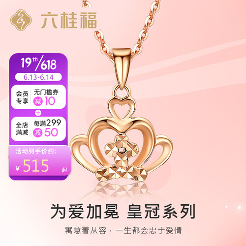 六桂福 皇冠18K玫瑰金吊坠