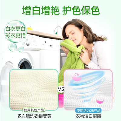 洗衣粉里含活性氧成分,可迅速溶解扩散,深入织物纤维内部,瓦解污渍。保护衣服色彩,白衣亮白,彩衣鲜艳。