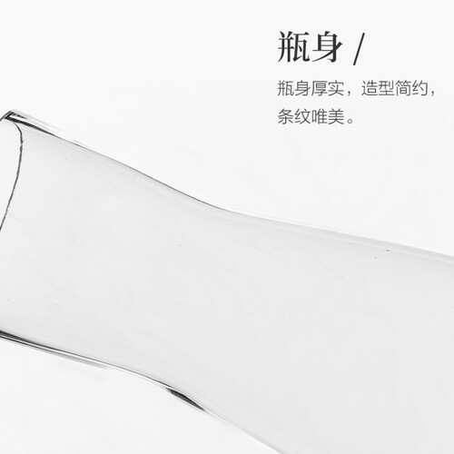 厚实的瓶身,配合通透性良好的玻璃质地,折射出流光溢彩的美感。瓶底厚实,整体稳定性强,适合搭配各种花朵。