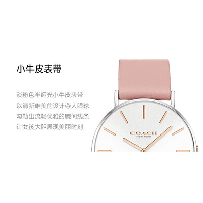 简约小巧的造型,采用矿物质水晶表镜,通透度高,读时清晰,耐磨不易刮花。质感小牛皮表带,舒适透软,穿戴方便。