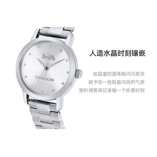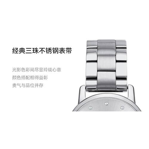 简约的表盘,干净的设计,让简约成为一种时尚。施华洛世奇水晶点缀,璀璨而富有层次感,散发着迷人的色泽。