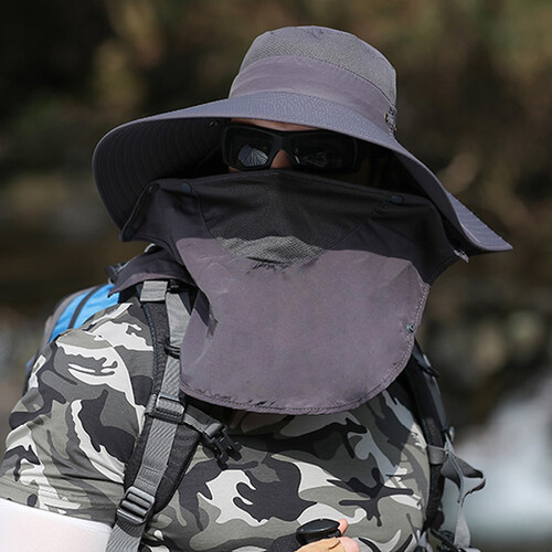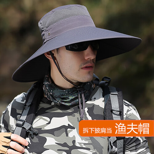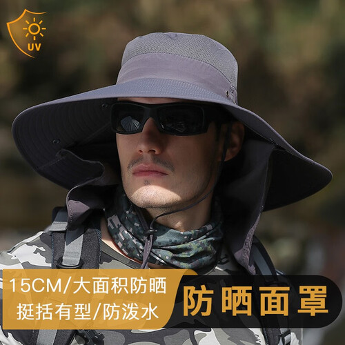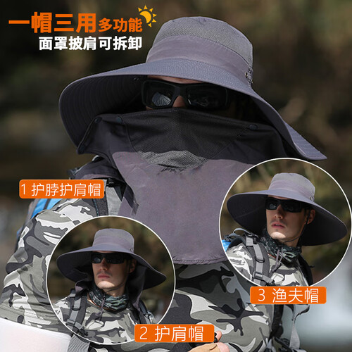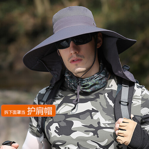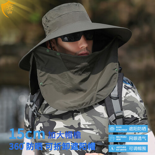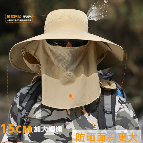 夏天户外登山钓鱼防晒帽,15CM加大帽檐,防晒遮阳效果更出色。配以可拆卸面罩披肩设计,让你360防晒。