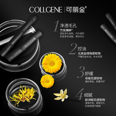 蕴含竹炭精粹,可以疏通肌肤毛孔,清洁多余油脂。北美金缕梅提取物可以平衡肌肤水油。胶原蛋白成分,质地顺滑不拔干。