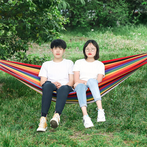 蓝绿条纹的印花设计,很有春日之气,在树下乘凉十分应景;使用金属鸭嘴扣结构,坚固耐磨,不易生锈,延长使用寿命。