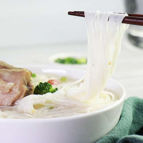 这款猪骨浓汤味的过桥米线主要采用热风干燥工艺制作而成,吃起来不油腻、不上火。