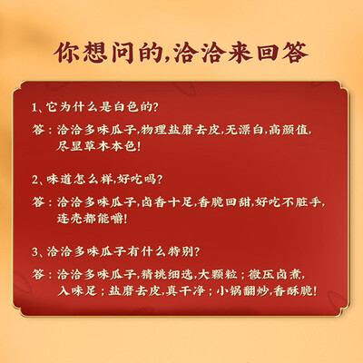 咔嚓咔嚓,香味便漫延在唇齿之间。大粒的选材,饱满的瓜子,香酥的瓜子仁,薄薄的瓜子皮,让你享受这香酥的美味。