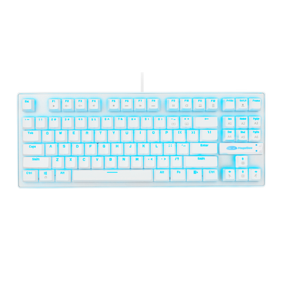 87键设计,简约秀美,放置桌面也不占用太多空间。搭载蓝色背光,个性酷炫,营造更好的游戏氛围。精致细节,令打字更流畅。