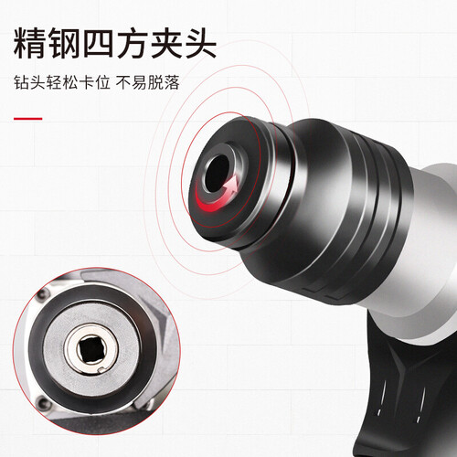 采用精钢四方夹头设计,能够轻松更换钻头,并将其牢牢夹持固定,保持作业时不脱落,提升使用安全性。