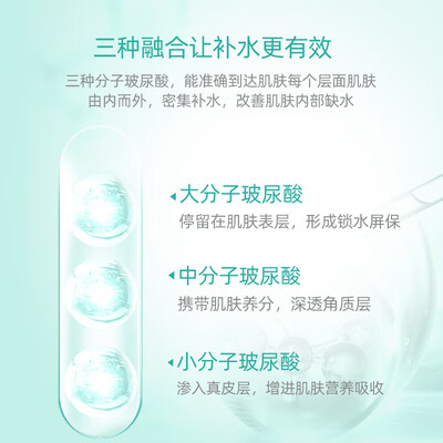 天然无添加,造就更温和的亲肤体验,呵护敏感肌人群。丰富小分子玻尿酸,可更好为肌肤补水保湿,调节肌肤水油。