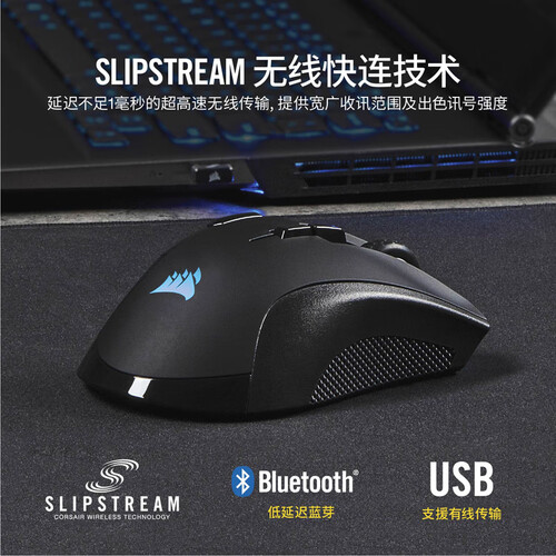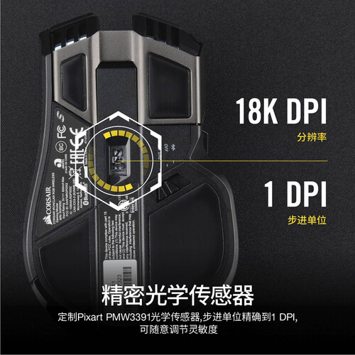 美商海盗船这款鼠标拥有表面校准功能,可根据不同的鼠标面料自动调整精准度,且搭载无线连接技术,告别繁杂的缠绕线缆。