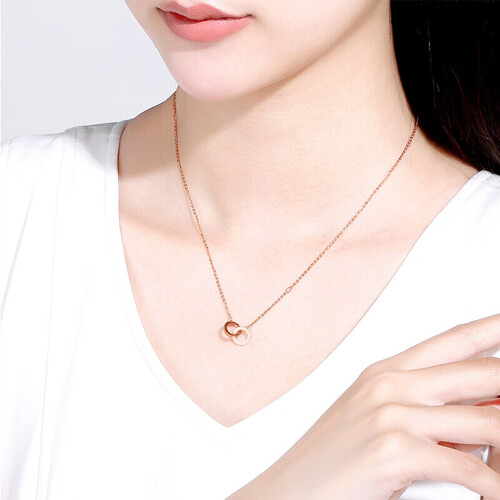 双环相扣的造型,寓意着永不分离的爱情,很适合作为定情信物。选用优质18K金材质,硬度较高,不变形,不褪色。