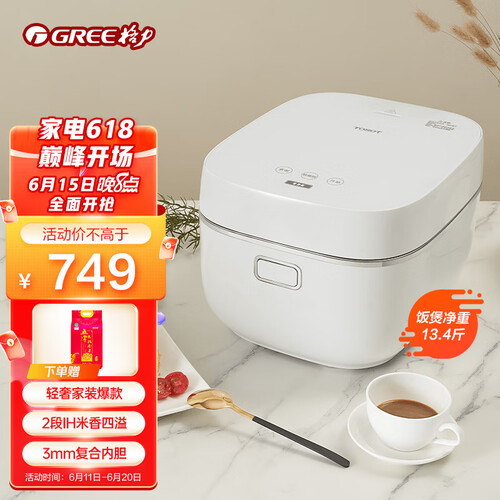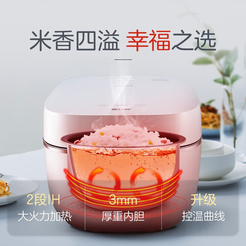 自带多段纯铜IH线圈,实现多段IH加热,让米粒均匀受热,颗粒感十足。内胆采用多层复合材质打造,可以让热量均匀传导,提升口感。