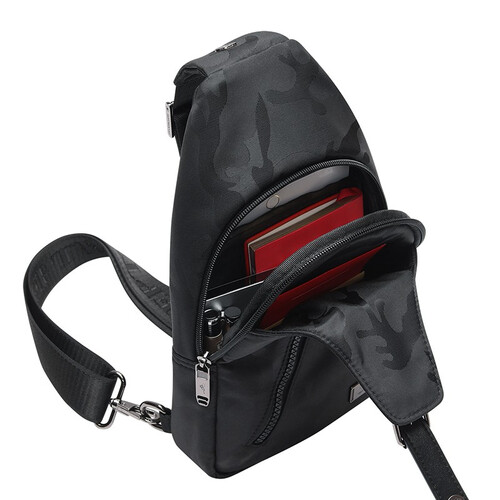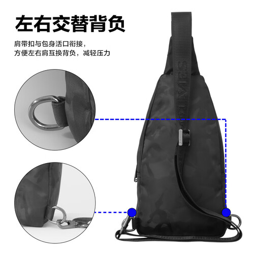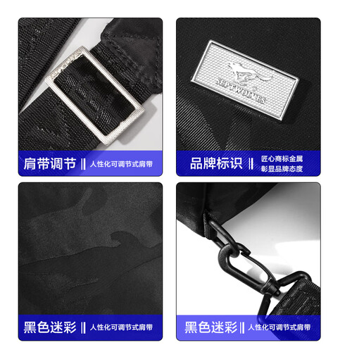 黑色迷彩低调时尚内涵,内里结构合理能装,面料轻盈透气,防水耐磨,手感柔软不怕磨损。