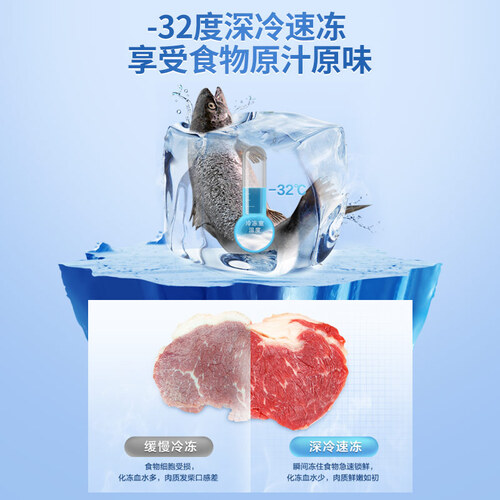 -32℃深冷速冻技术,冷冻温度更低,冷冻时间更短,可以快速度过食材冷冻冰晶期,锁住食材营养,解冻血水少还不破坏细胞。