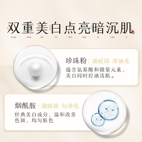 采用复配草本配方,温和滋养肌肤,让肤质更加水润有光泽。蕴含珍珠粉和烟酰胺双重美白成分,帮助淡化痘印,提亮肌肤。