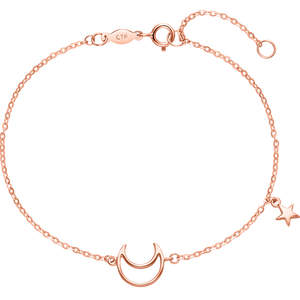 采用18K金材质制成,触感细腻,且佩戴时更舒适亲肤。星月元素点缀的链身,寓意着爱情如星月般永恒的美好。