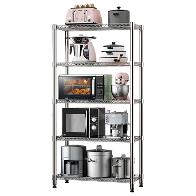 采用加粗加厚的碳钢管,结构牢固,框架稳定,不易晃动。置物架采用加密网格,置物时更加平稳,不易掉落。