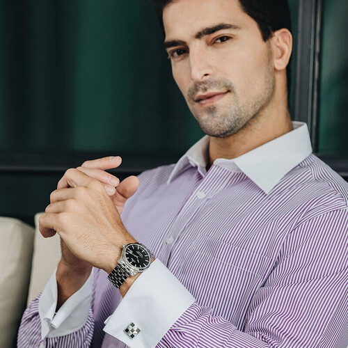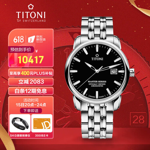 日历视窗搭配黑色表盘,展现古典工艺与现代科技结合之美。表盘呈现深邃华丽的黑色,搭配小巧的日历视窗,美观实用。