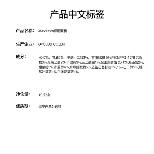 JMsolution 保湿面膜