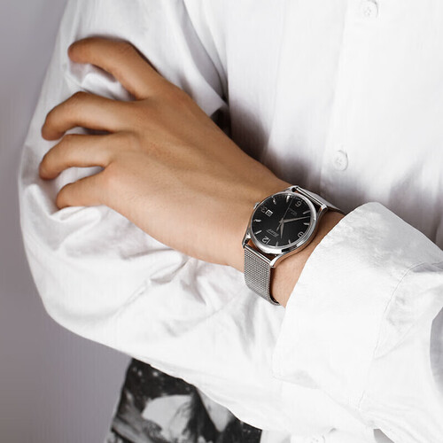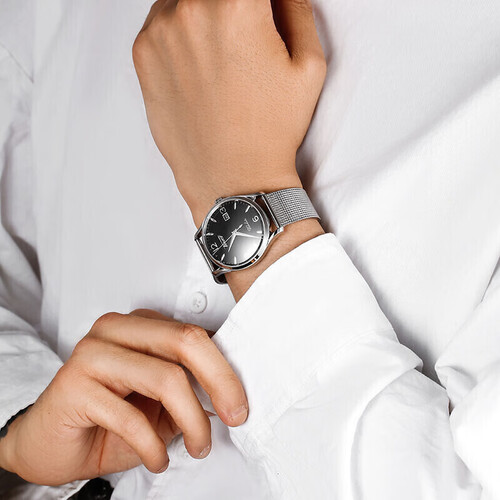 酷炫的黑表盘,经典配色易于日常搭配,数字与条形刻度点缀,造型简约大气,助你清晰读时,无论商务休闲场合佩戴都有范。