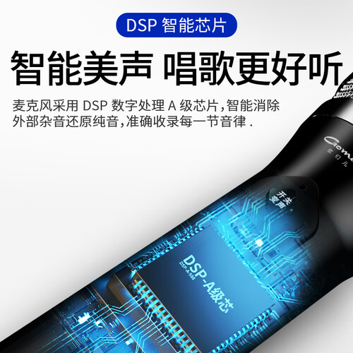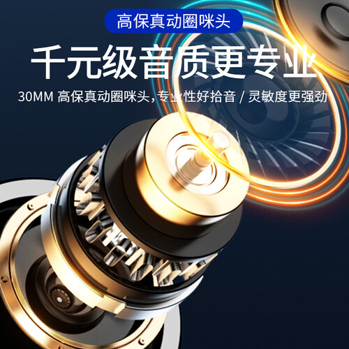 采用DSP数字处理芯片,智能消除外部噪音,30mm的高保真动圈音头,灵敏度更高,拾音面积更广泛。