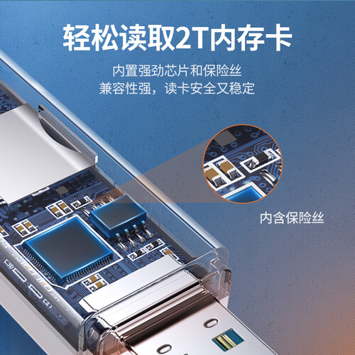 内置强劲芯片和保险丝,可轻松读取,兼容性能强,安全又稳定,便于满足读卡需求。接口设计,增强耐磨性,牢固贴合,不容易松动。