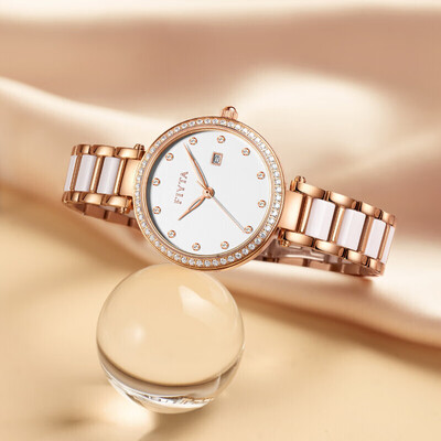 12点位仿水晶镶嵌,精致美观大气,多了一份别致气息。采用间白瓷表带设计,手感细腻光滑,佩戴温润舒适。