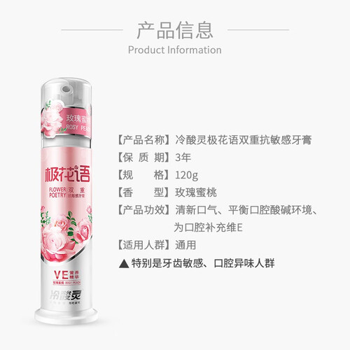从葡萄柚及甘草中提取天然成分,帮助抑制口腔细菌滋生,含有VE营养精华,释放营养精华,以及双重抗敏因子,舒缓牙齿敏感。