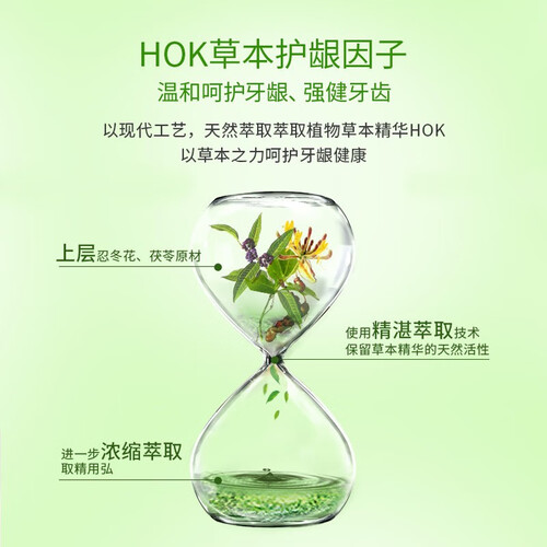 从植物中提取草本精华,材质温和,不会损坏牙龈,还能强健牙齿。嗜喱膏体有温和磨粒,让泡沫深入牙缝,呵护牙龈健康。