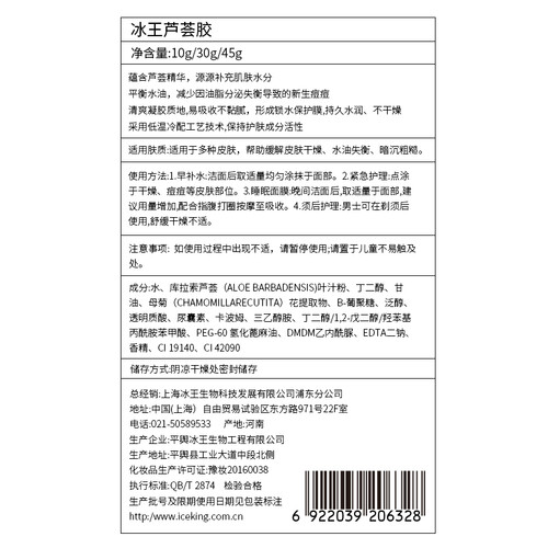 低温冷萃芦荟精华,使用起来清凉水润,十分舒适,味道清新淡雅,沁人心脾。补水保湿又能修护晒后受损肌肤,平衡水油,预防痘痘。