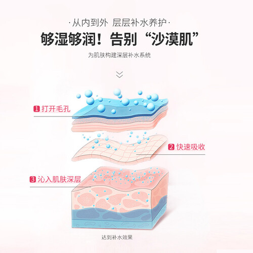 特别添加三重植物保湿配方,亲和盈润肌肤,保湿透亮,加倍呵护干燥肌肤。良好的产品延展性,能快速被肌肤所吸收。