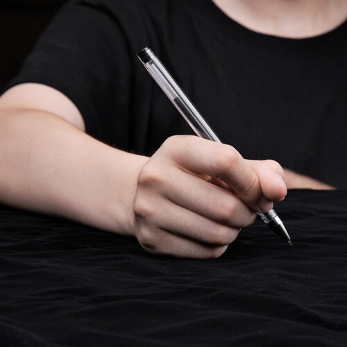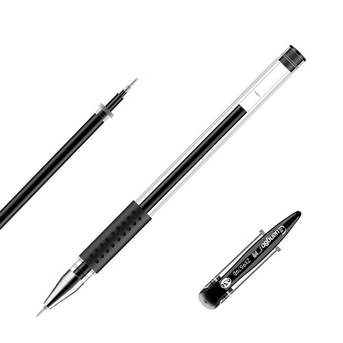 握笔处设有软胶套,长时间书写不感觉累手;设计有笔夹,能够夹在本上,有效防止丢失;笔芯为可替换设计,实用性能较强。