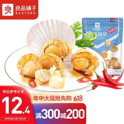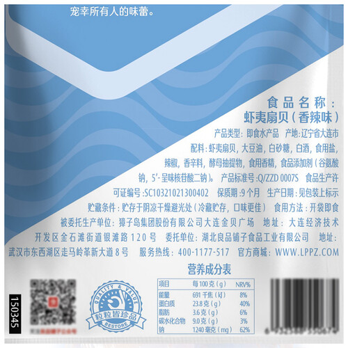 良品铺子虾夷扇贝在旺季捕捞新鲜大个扇贝,抢鲜加工,大个头滑嫩清甜,清爽海鲜味,鲜辣爽口,宠幸你的味蕾。