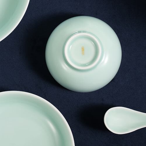 精选龙泉青瓷烧制而成,瓷质青翠滋润,有类玉之美,经由高温烧制后,釉面稳定性好,久用不褪色,而且适用于微波炉、洗碗机等。