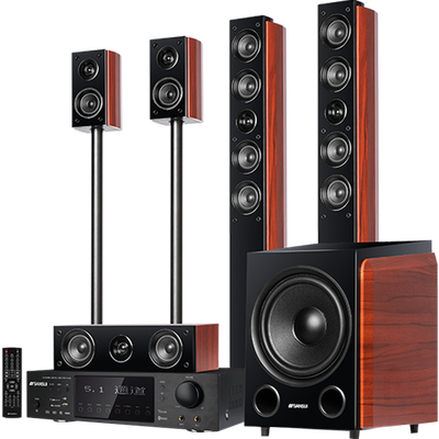 落地式组合款,运用5.1环绕技术打造,可全空间环绕音效输出。大磁钢喇叭配置,增强声波冲程,声音透彻清亮。