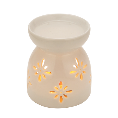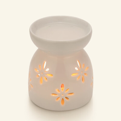 陶瓷材质的香薰炉,全身上釉制作,通透明亮更雅观。搭载镂空花纹设计,在烛光影射之下,生动别致,更添美感。