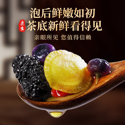 选用红枸杞,黄精,黑枸杞等日常食材作为主原料,加工成袋包装,营养好吸收。直接开水冲泡即可,省心又省事。