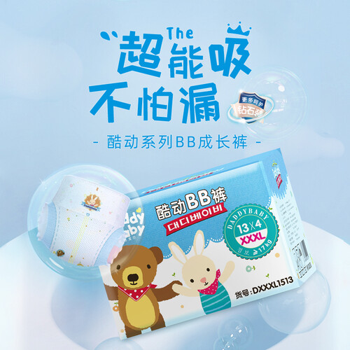 采用3D倍柔亲肤面层,清爽透气时刻体验,屁屁不在闷热潮湿。拥有海量的吸收能力,宝宝大尿量也不用担心,海量吸收不反渗。