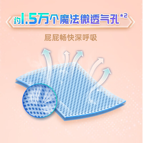 醒目的尿显提示,方便宝妈及时更换,避免红屁屁的发生。拥有3D微透气孔,结合高吸收的内部结构,始终保持表面的干爽。