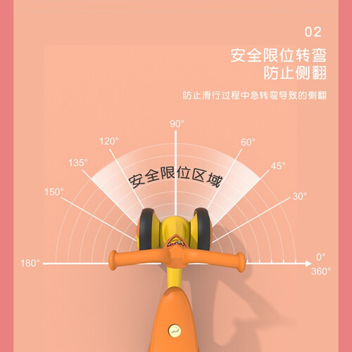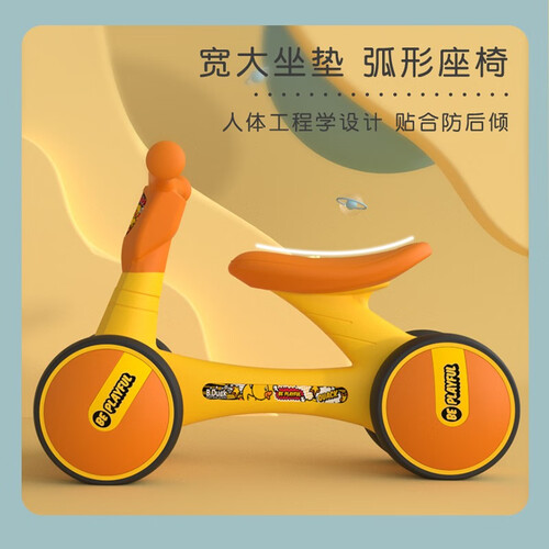 一体成型的三角稳定车身,安全稳固,加宽后轮设计,保持平衡防止侧翻,帮助孩子掌握速度与平衡,可旋转的车把,减震舒适。
