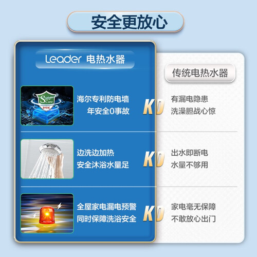 搭载国际标准防电墙,时刻安全防护,边洗边加热无安全隐患。2200W大功率,热浴够快才畅快,老小区也能畅快用水。